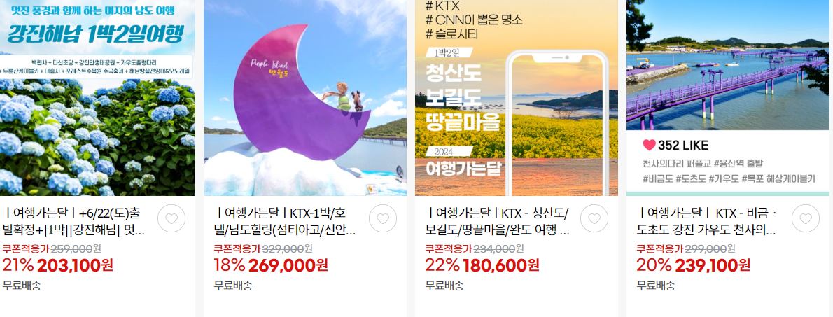 G마켓 다양한 여행상품을 할인 판매하네요.