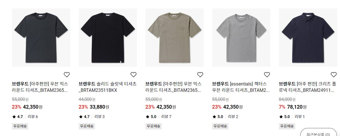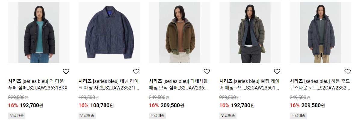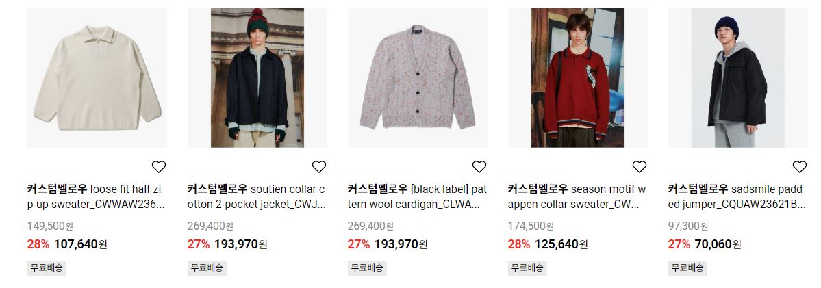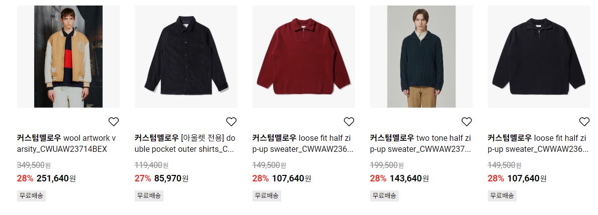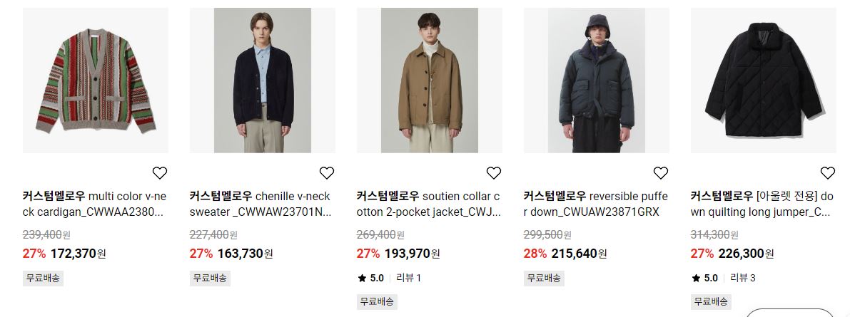 할인 품목 : 티셔츠, 자켓, 셔츠 등