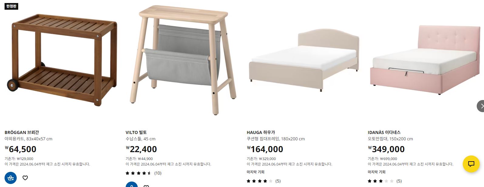 할인 품목 : 테이블, 수납장, 침대 등