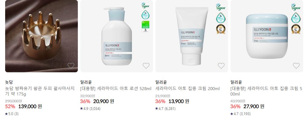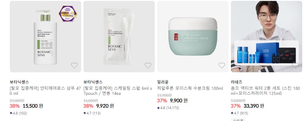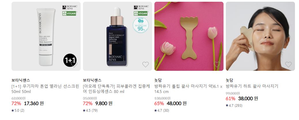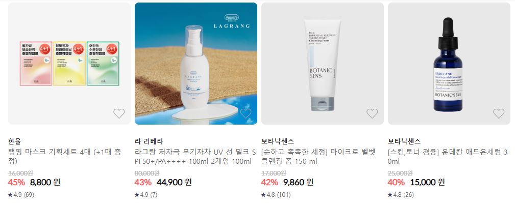 할인 품목 : 에센스, 선크림, 수분크림 등