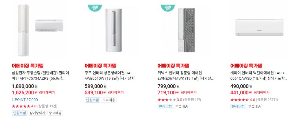 할인 품목 : 에어컨, 선풍기 등