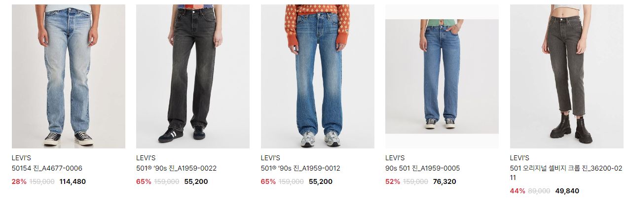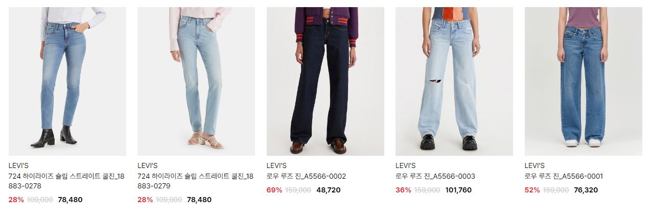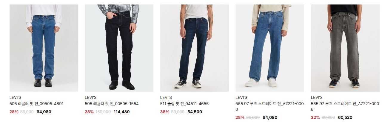 리바이스 다양한 제품을 할인 판매하네요.