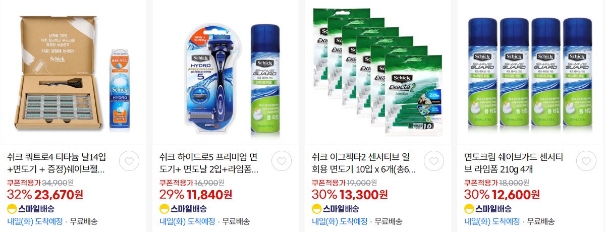 할인 품목 : 면도기, 세제, 샴푸 등