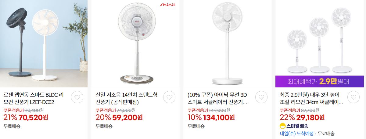 할인 품목 : 선풍기, 에어컨, 제습기 등