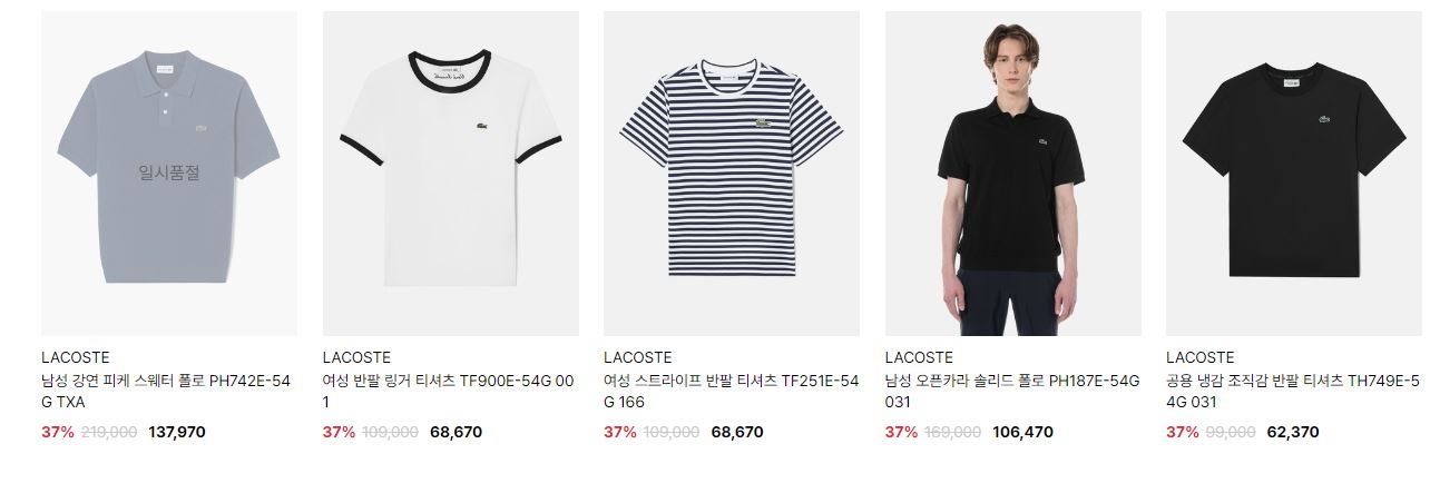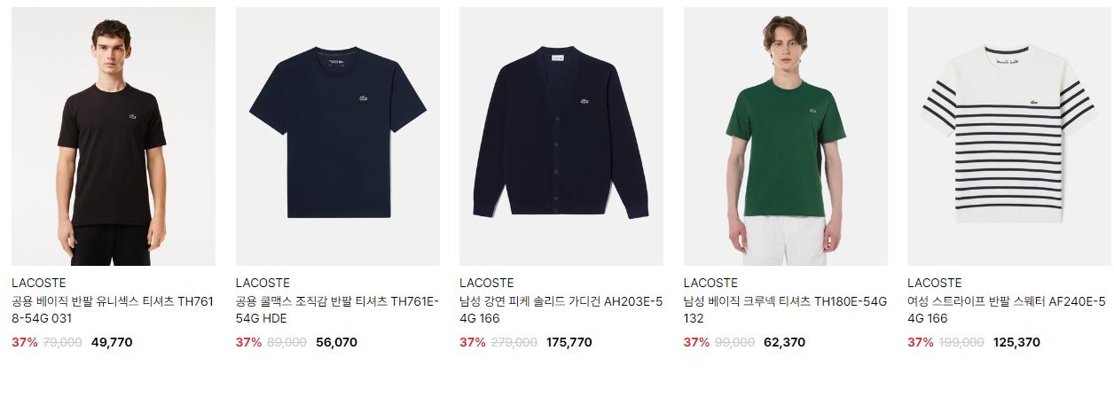 라코스테 다양한 제품을 할인 판매하네요.