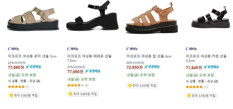 할인 품목 : 샌들, 로퍼, 펌프스 등