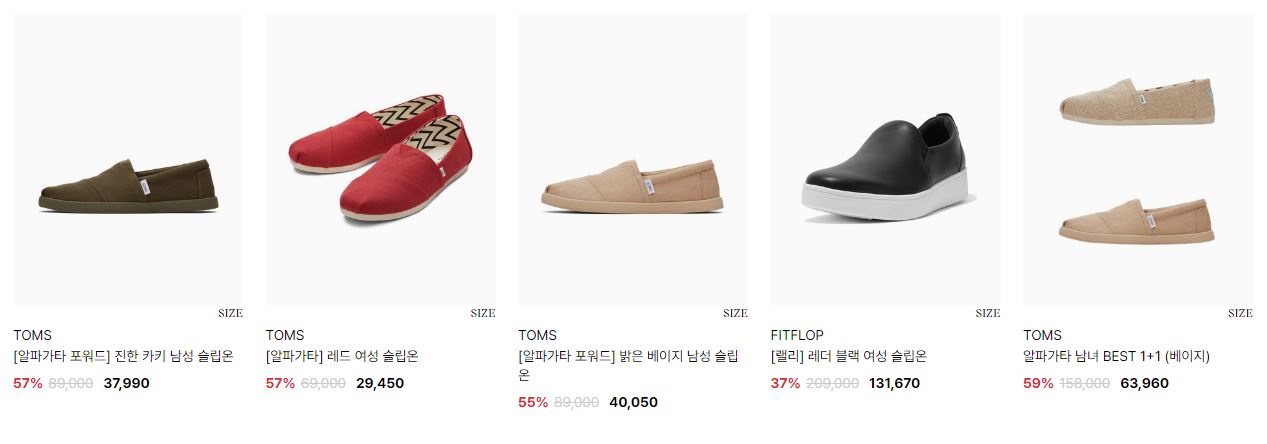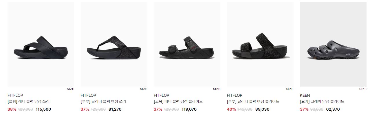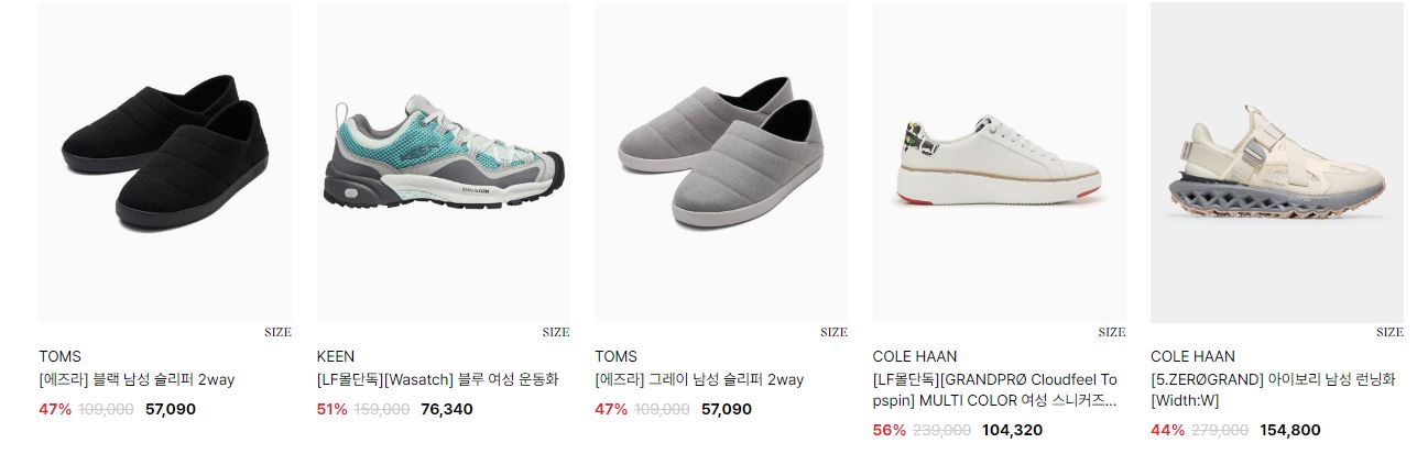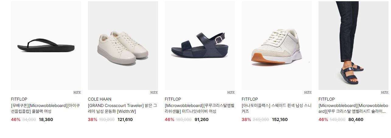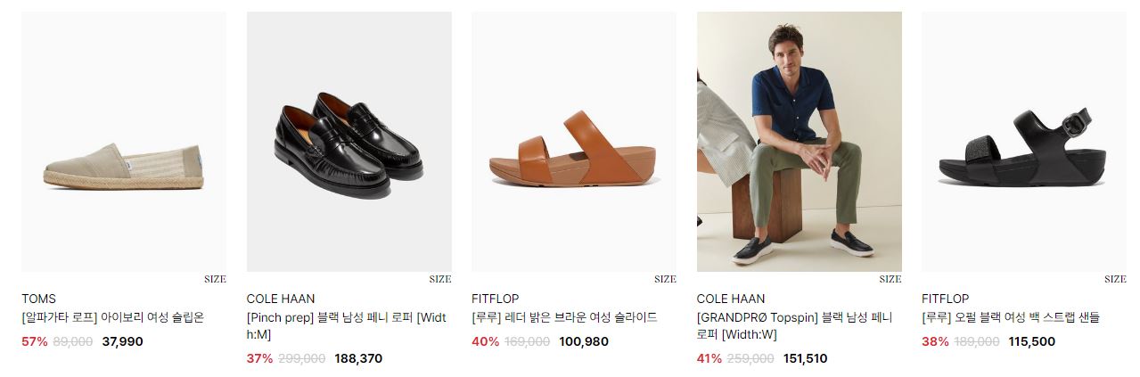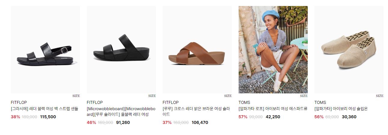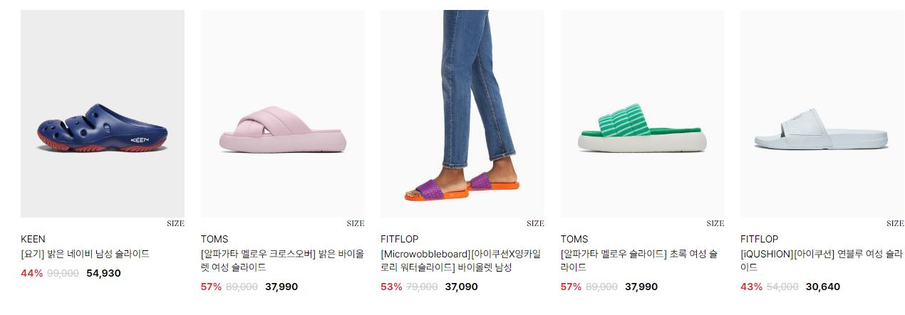 할인 품목 : 샌들, 운동화 등