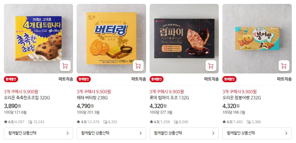 할인 품목 : 초코파이, 카스타드, 크런키 등