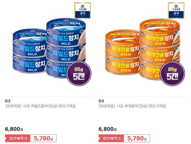 사조참치 다양한 제품을 할인 판매하네요.
