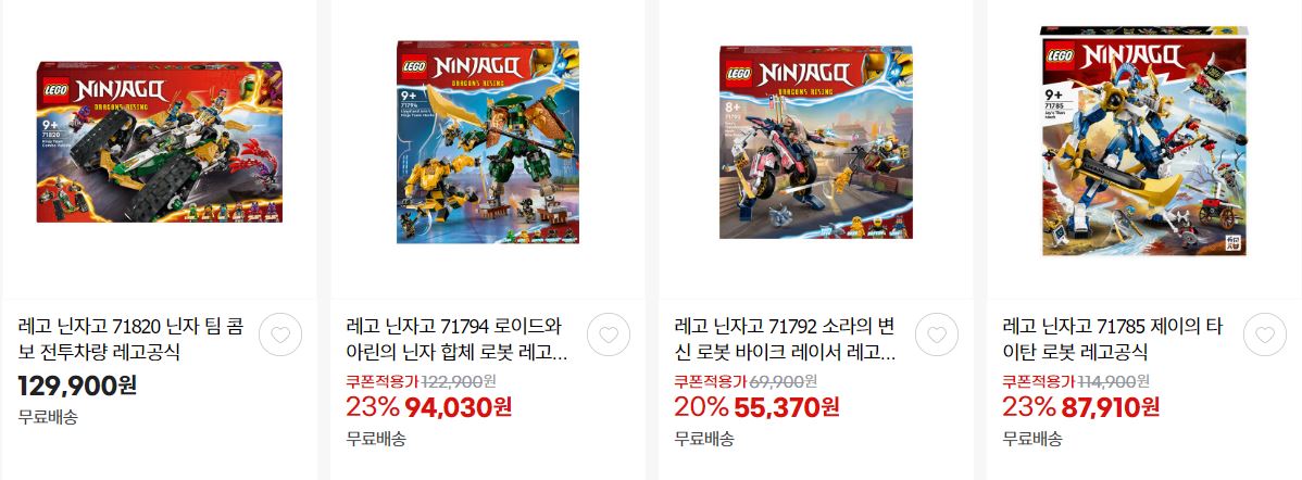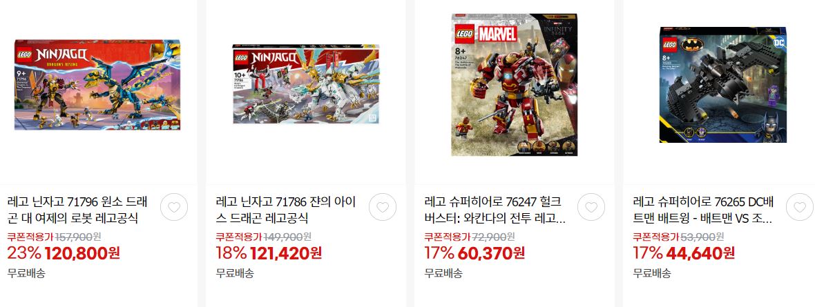 할인 품목 : 닌자고, 배트모빌 등