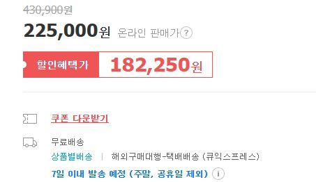 최대 할인가 182250원