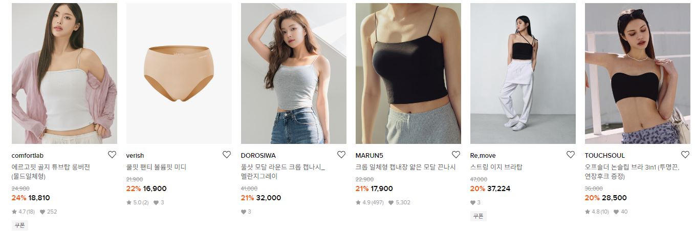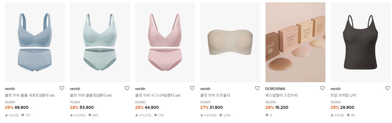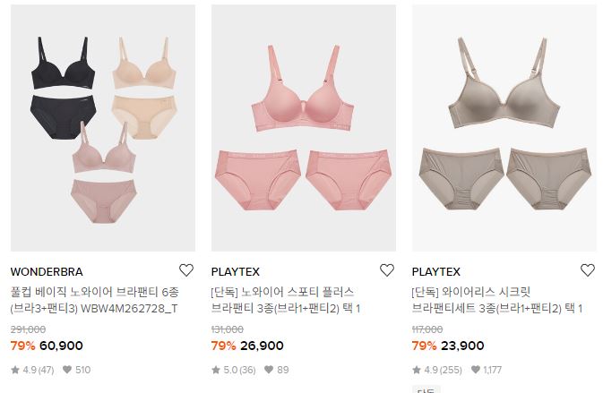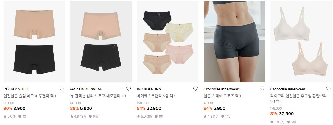 할인 품목 : 팬티, 브라 등