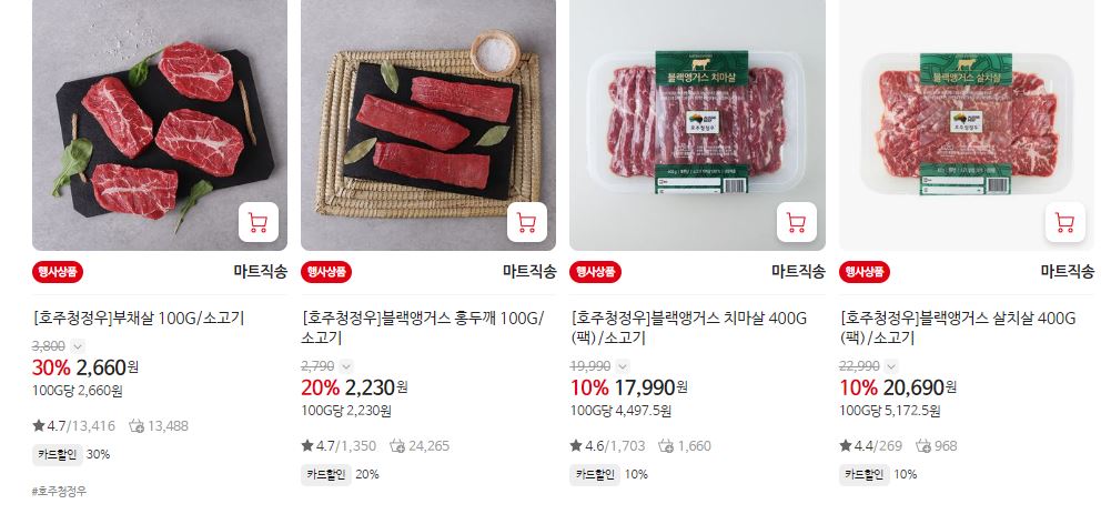 할인 품목 : 척아이롤, 안심, 부채살 등