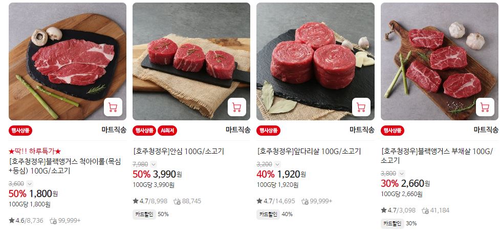 할인 품목 : 척아이롤, 안심, 부채살 등