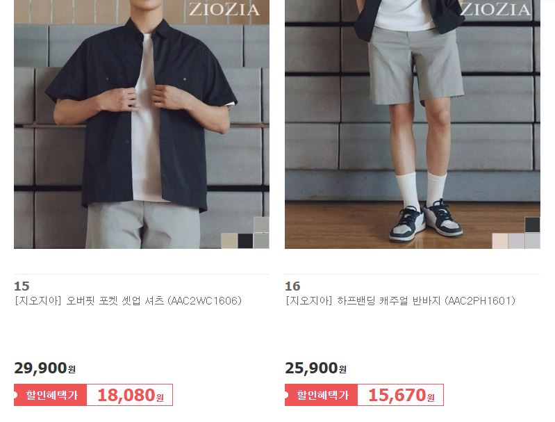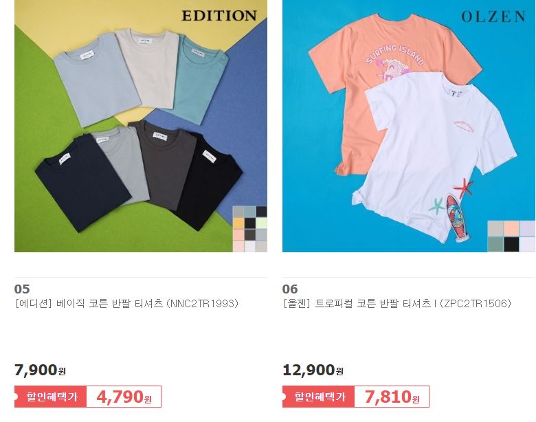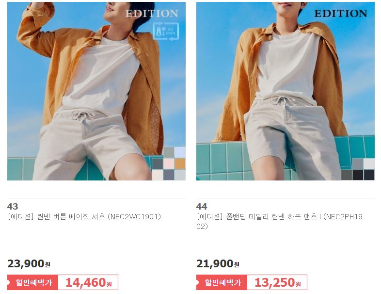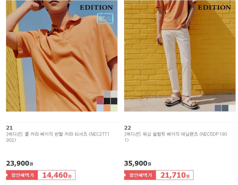 할인 품목 : 티셔츠, 팬츠, 셔츠 등