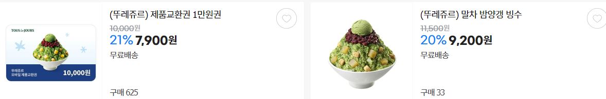 할인 품목 : 제품 교화권, 말차 밤양갱 빙수