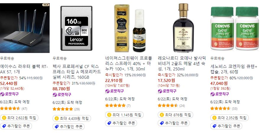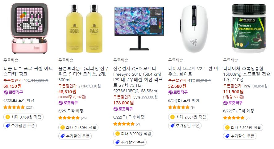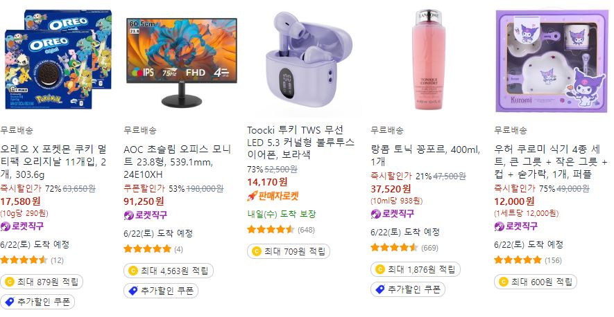 쿠팡 다양한 제품을 할인 판매하네요.