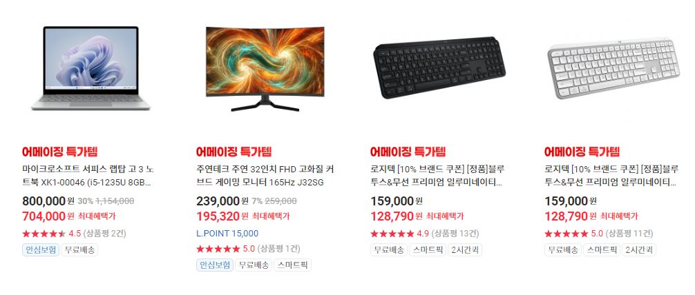 할인 품목 : 노트북, 키보드, 마우스 등