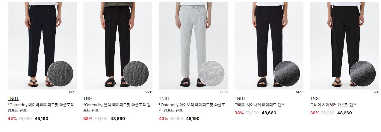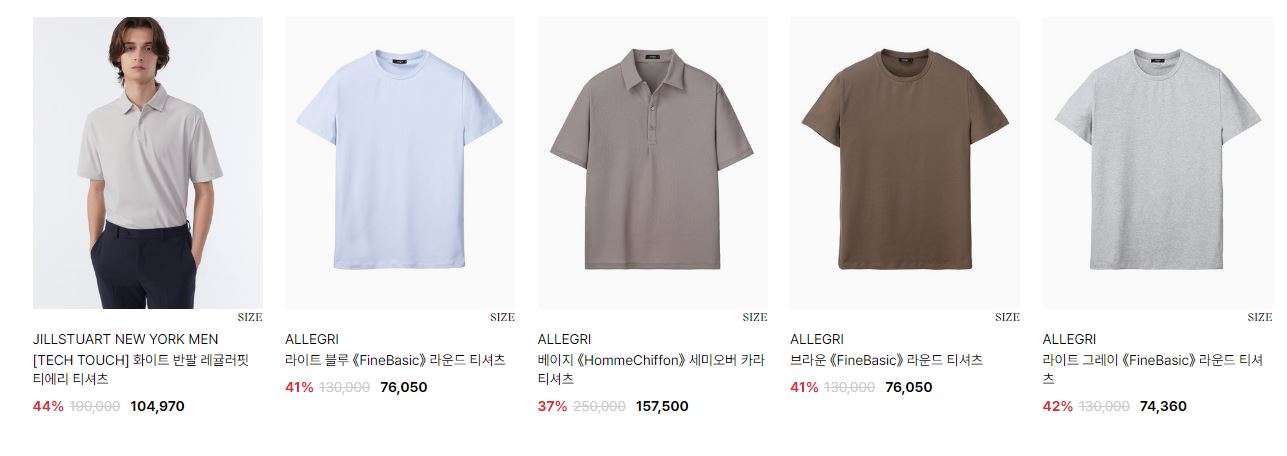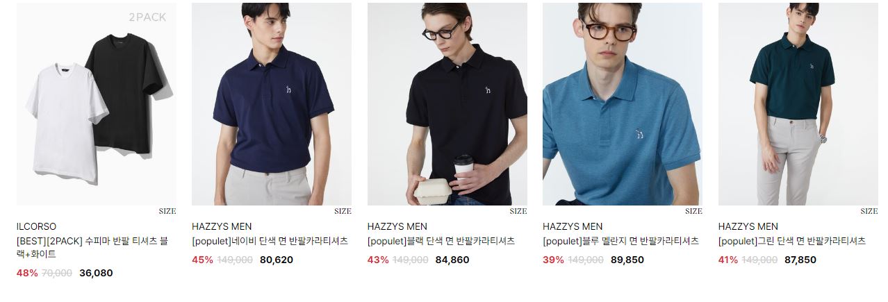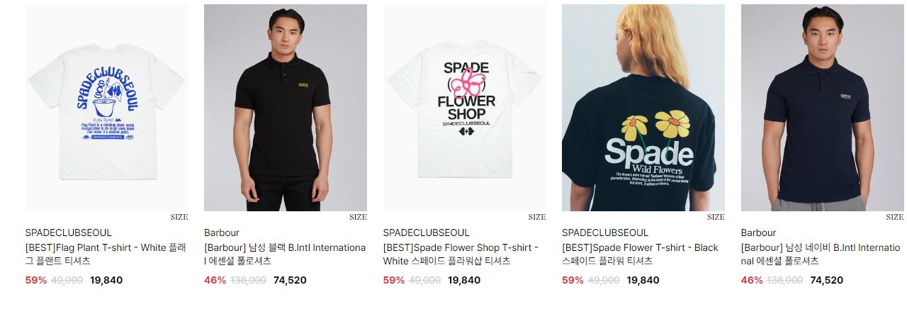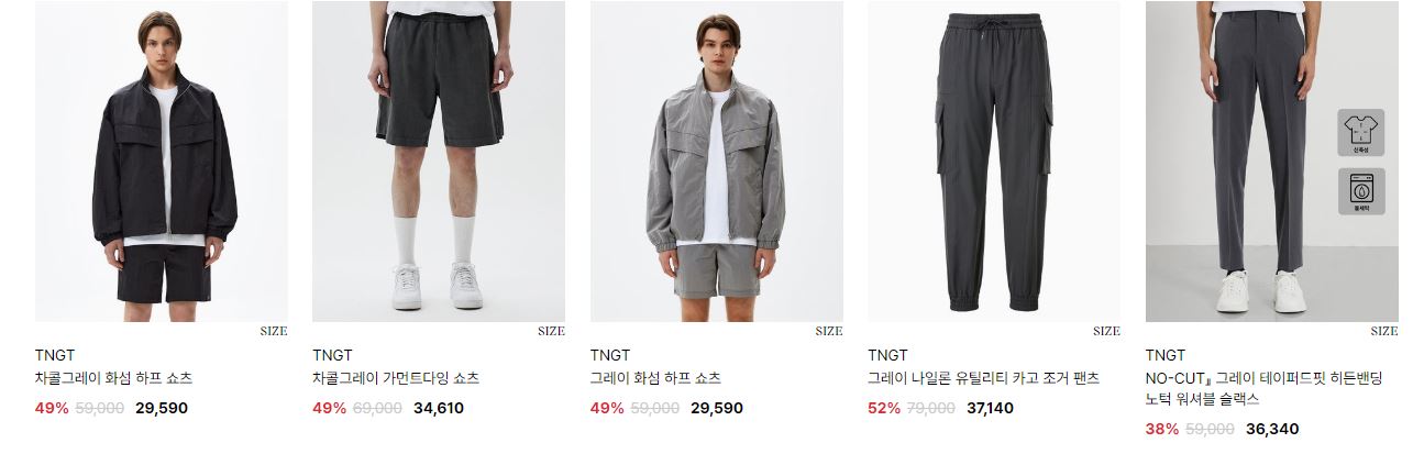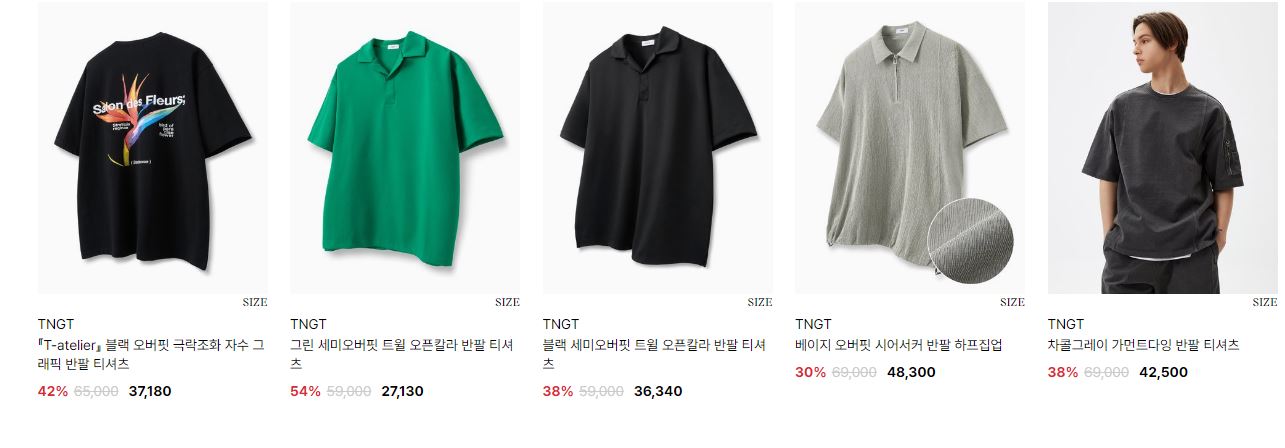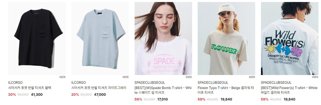 할인 품목 : 티셔츠, 팬츠, 셔츠 등