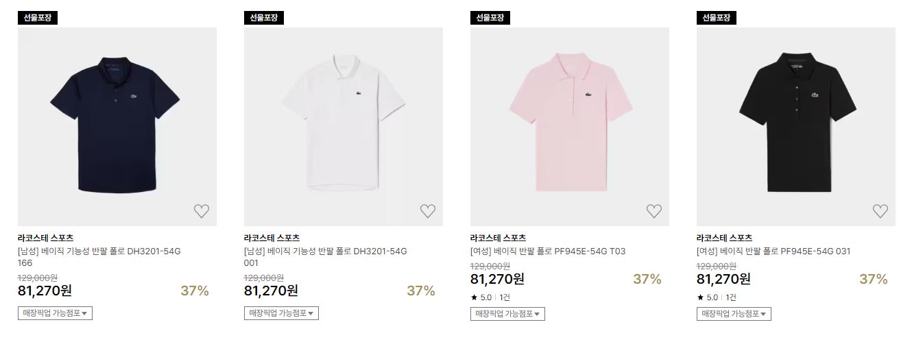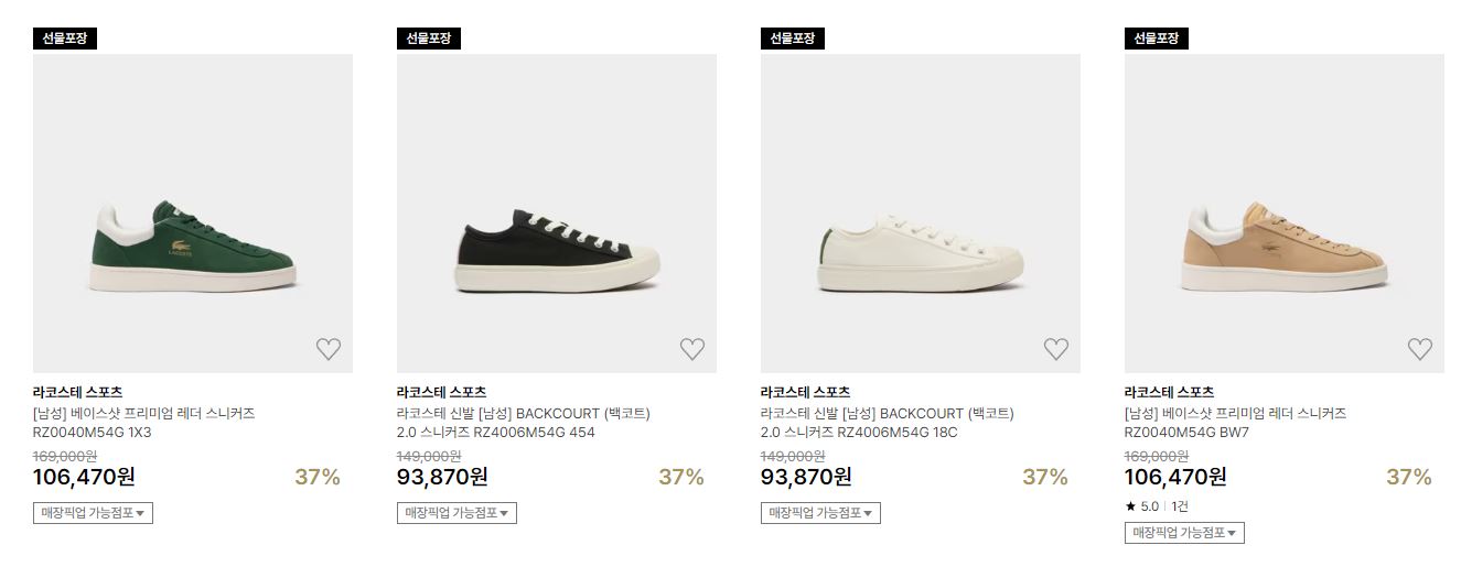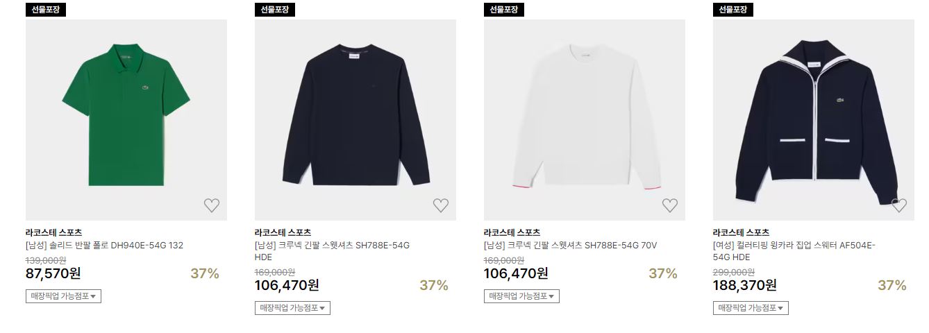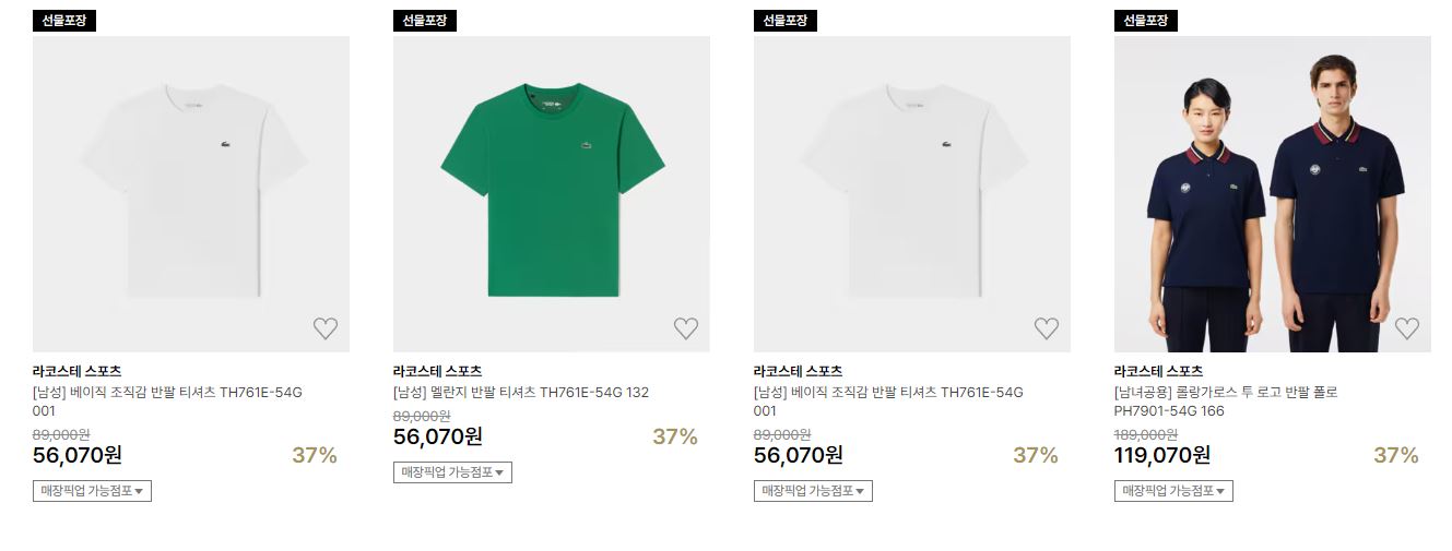 라코스테 다양한 제품을 할인 판매하네요.