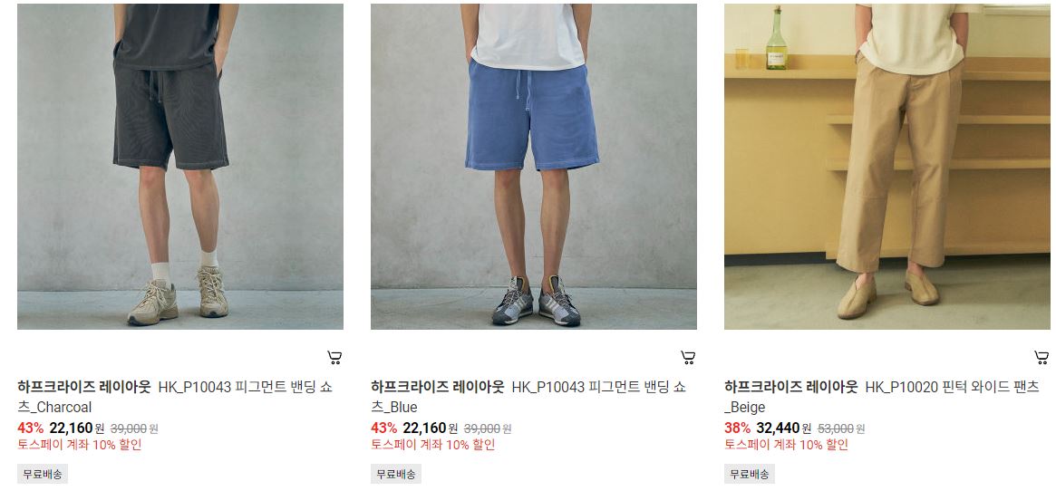 하프크라이즈 레이아웃 다양한 제품을 할인 판매하네요.