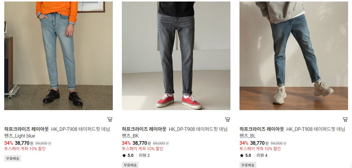 할인 품목 : 데님, 반바지 등