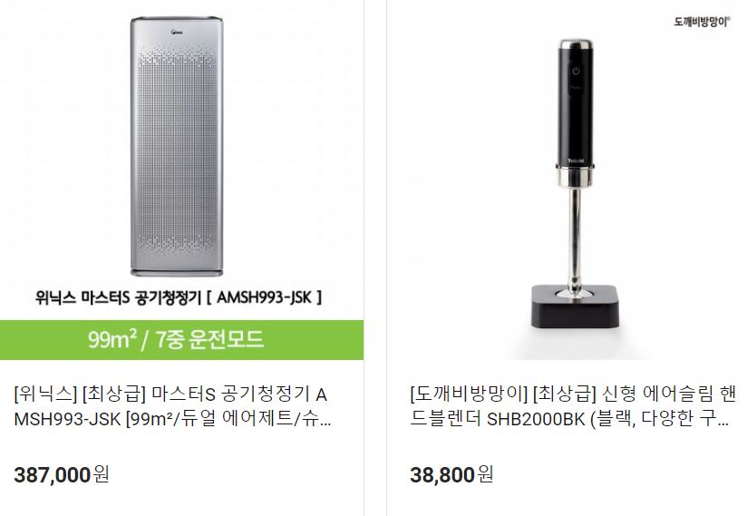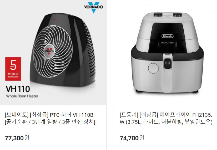 할인 품목 : 에어프라이어, 키보드, 청소기 등