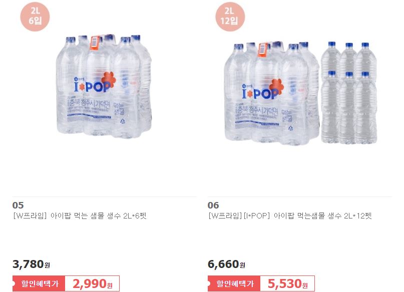 아이팝 먹는 샘물 다양한 제품을 할인 판매하네요.