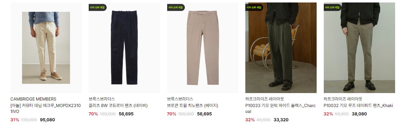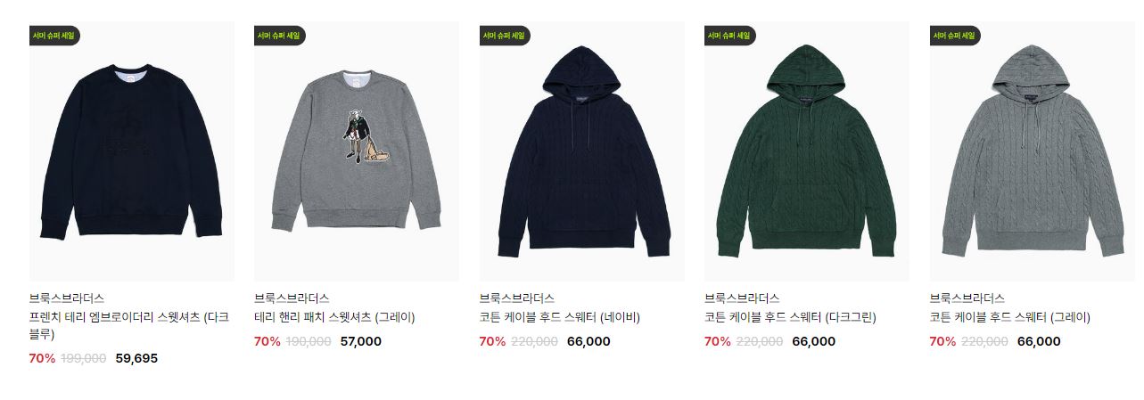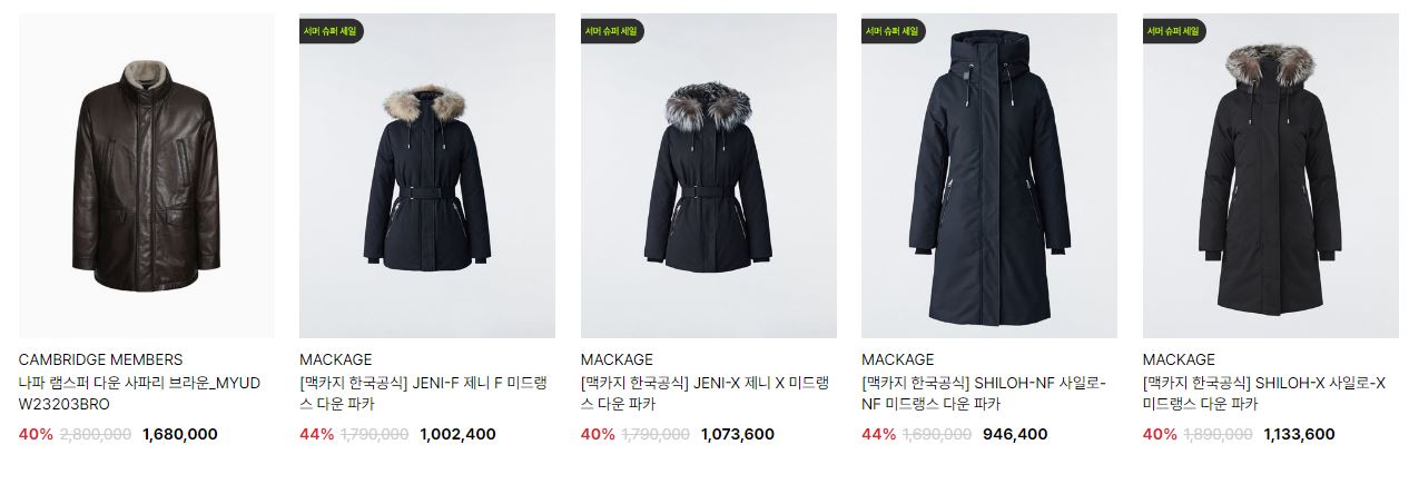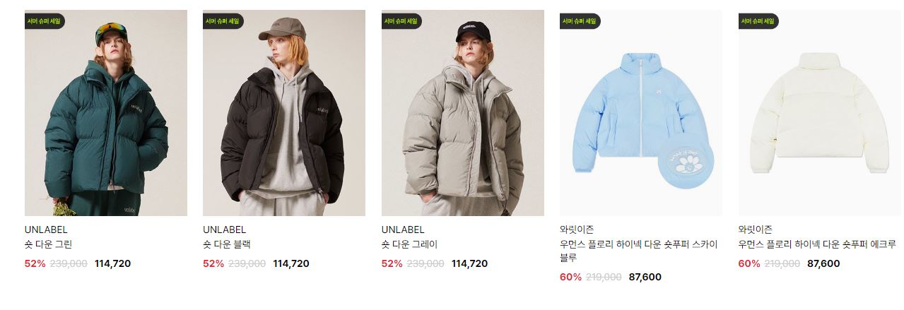 할인 품목 : 점퍼, 코트, 티셔츠, 팬츠 등