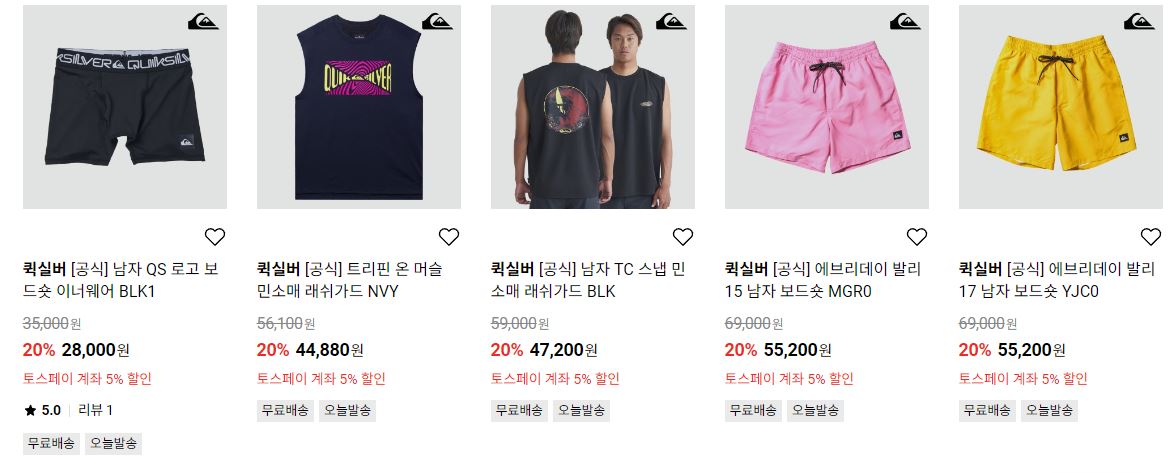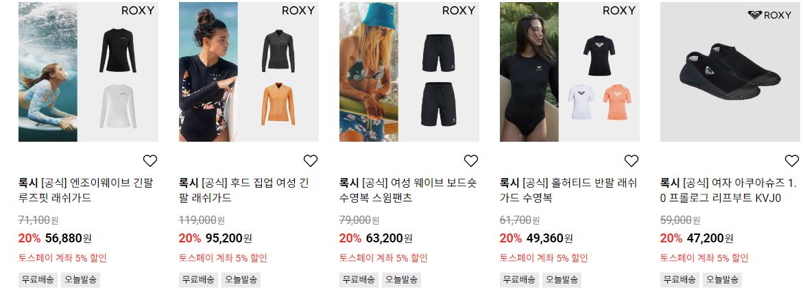 퀵실버 & 록시 워터 스포츠 아이템 세일 정보 [링크]