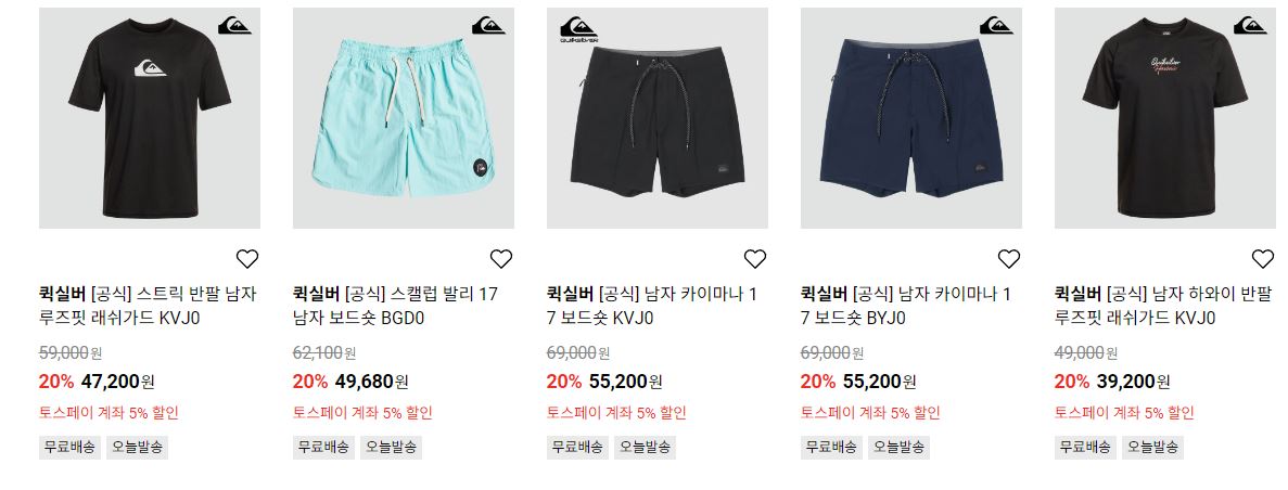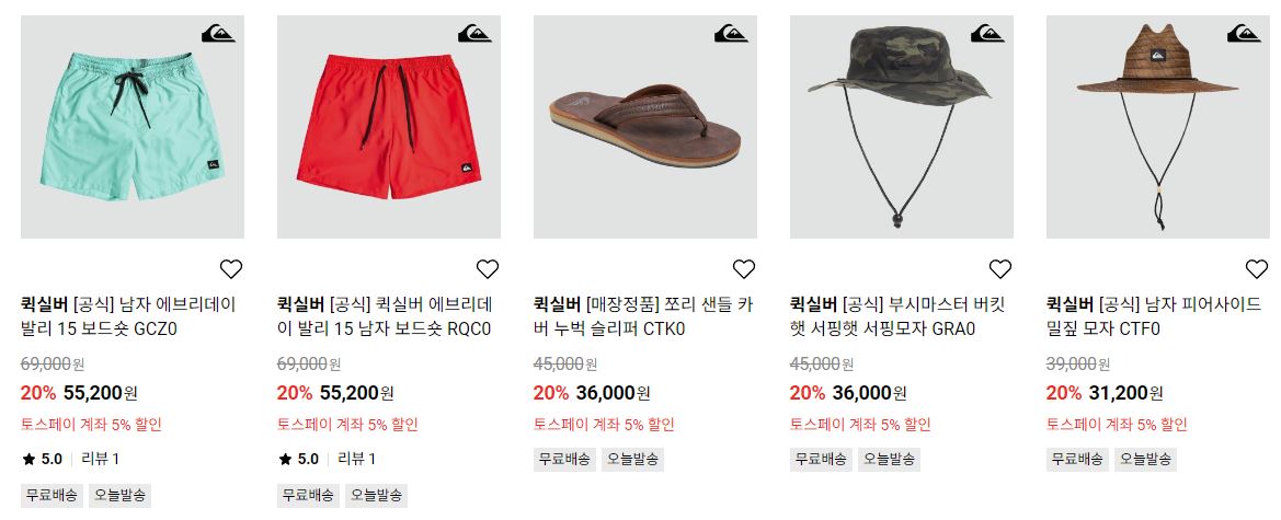 퀵실버 & 록시 워터 스포츠 아이템 세일 정보 [링크]