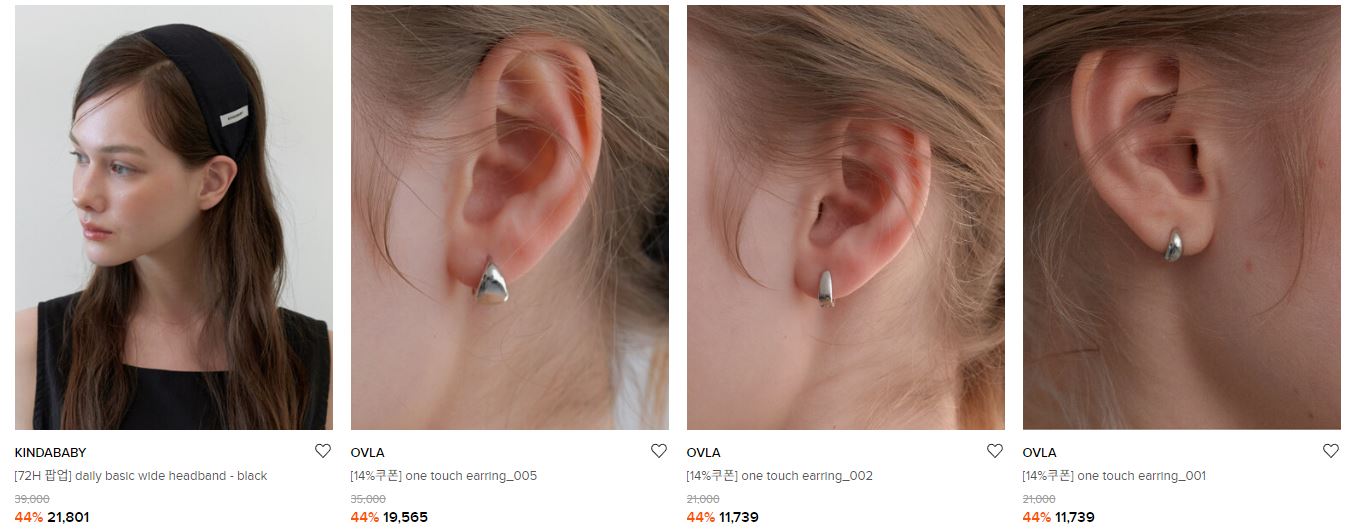 할인 품목 : 헤어밴드, 목걸이, 헤어핀 등