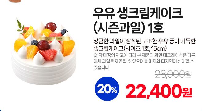 할인 품목 : 우유 생크림케이크, 애플망고빙수 등
