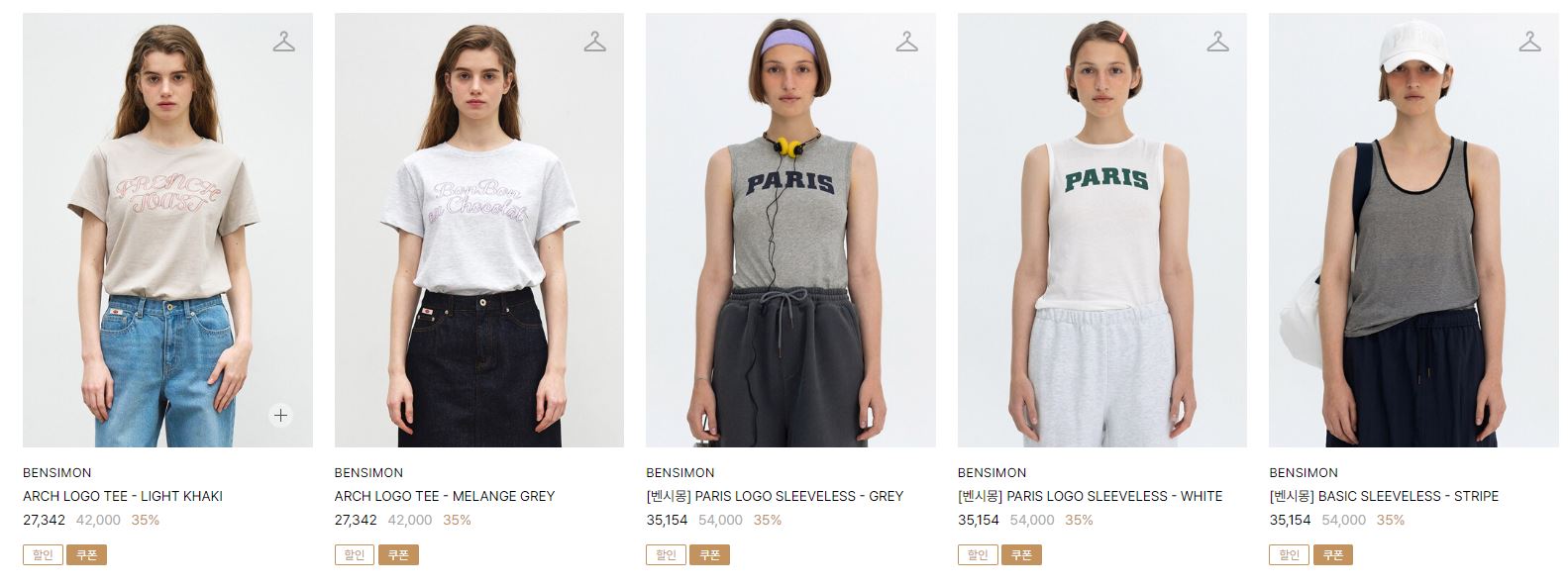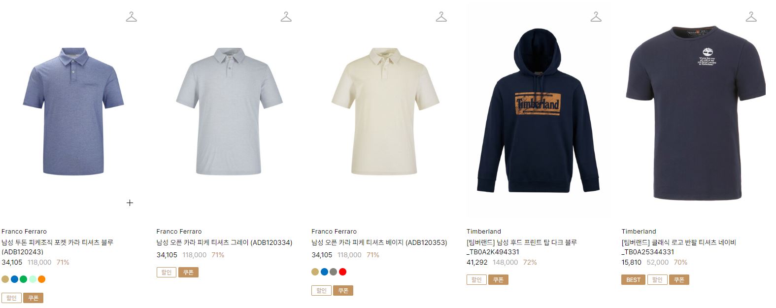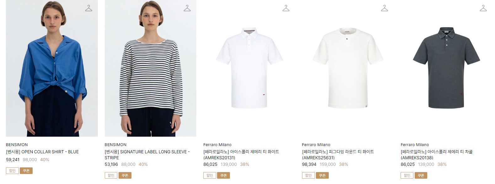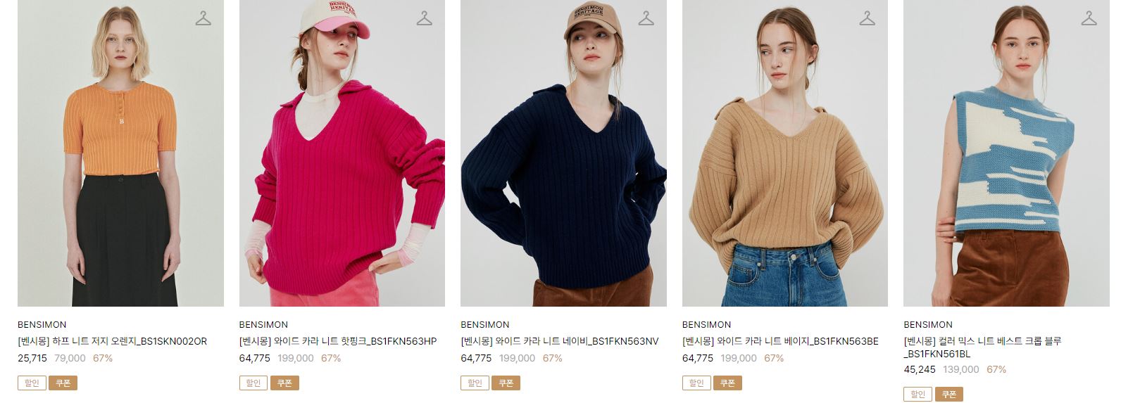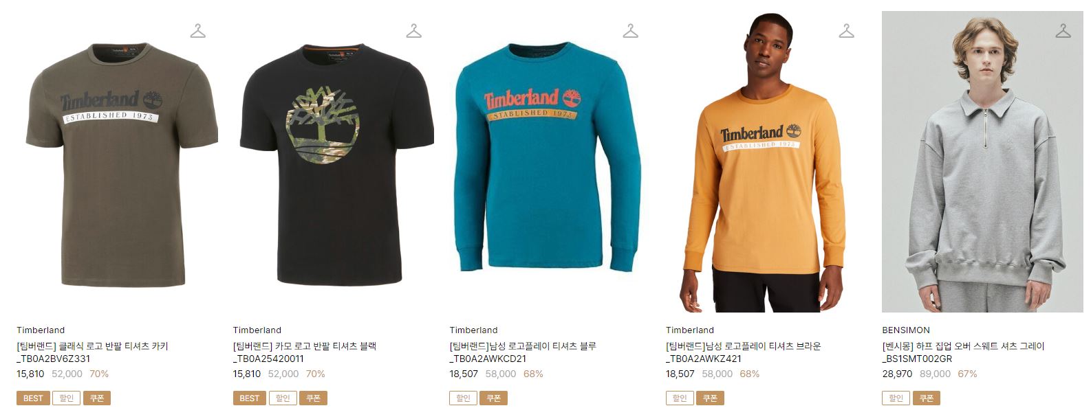 할인 품목 : 티셔츠, 니트, 셔츠 등