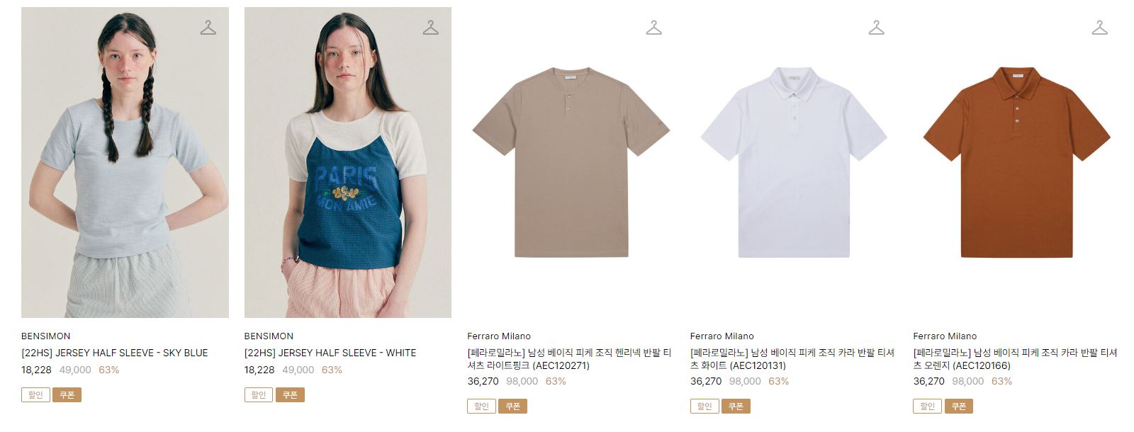 할인 품목 : 티셔츠, 니트, 셔츠 등