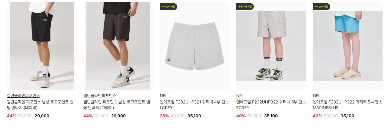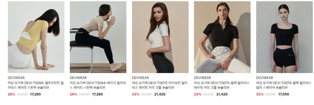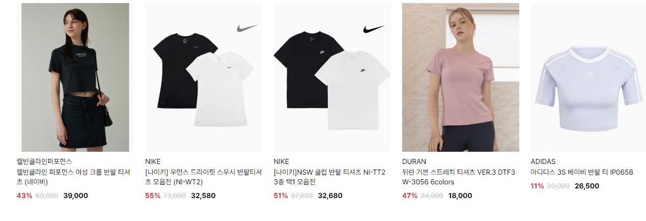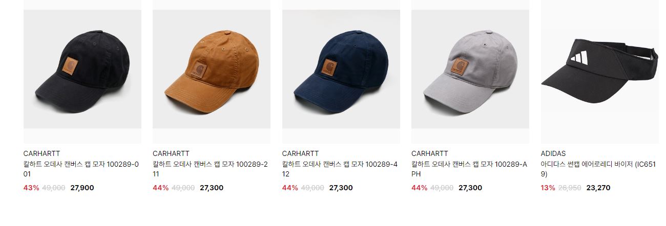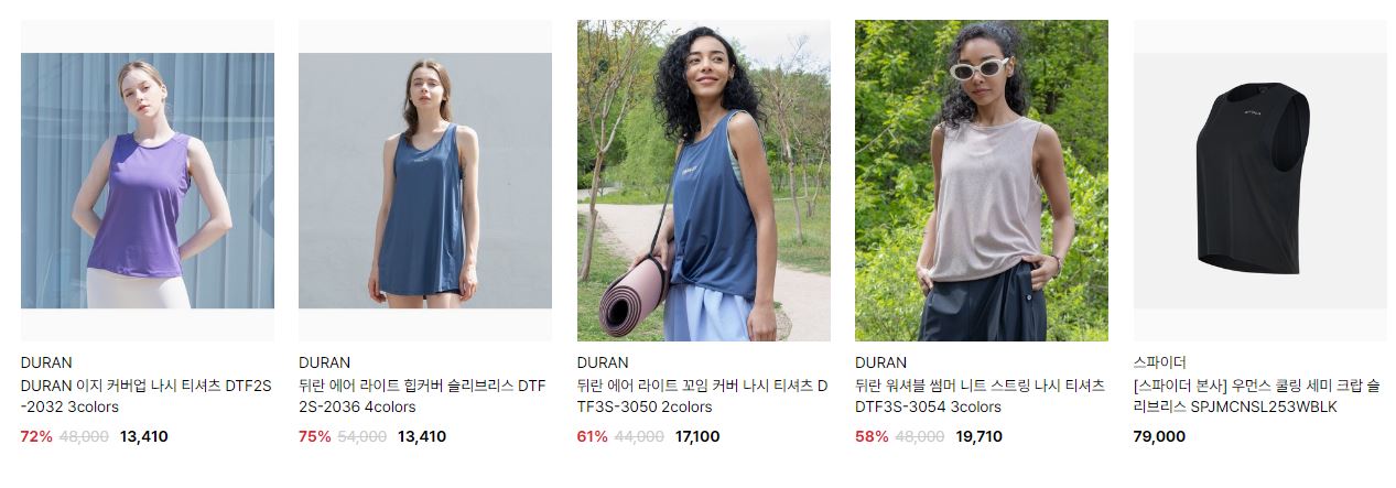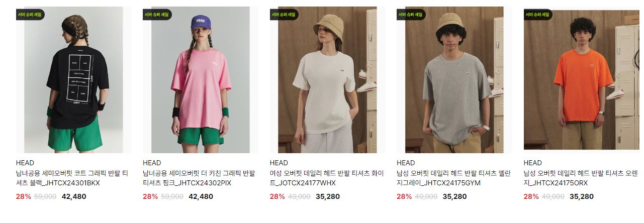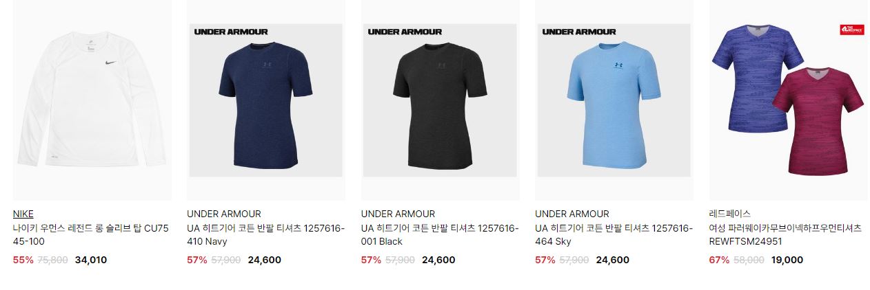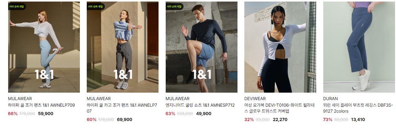 할인 품목 : 모자, 티셔츠, 레깅스 등