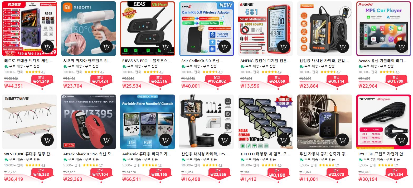 알리익스프레스 다양한 제품을 할인 판매하네요.