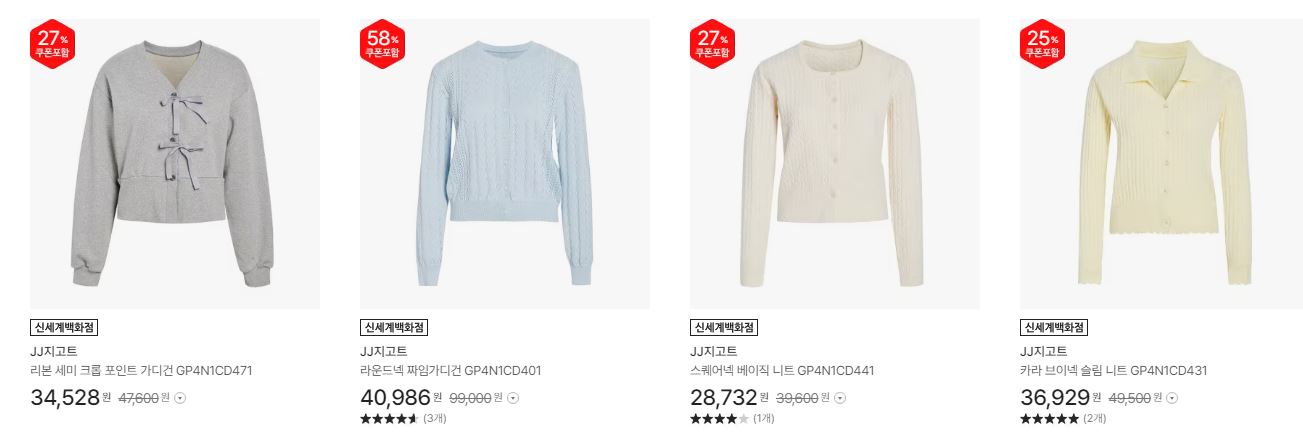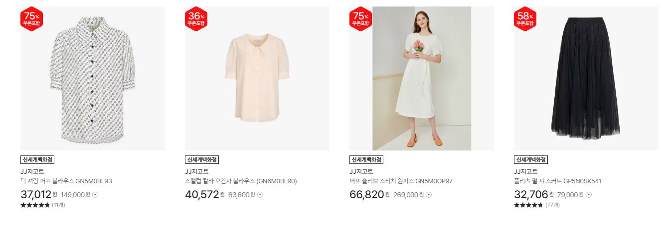 JJ지고트 다양한 제품을 할인 판매하네요.