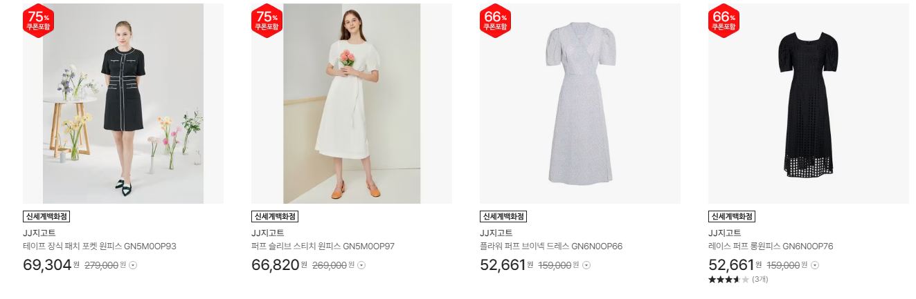 할인 품목 : 점퍼, 코트, 원피스, 티셔츠 등