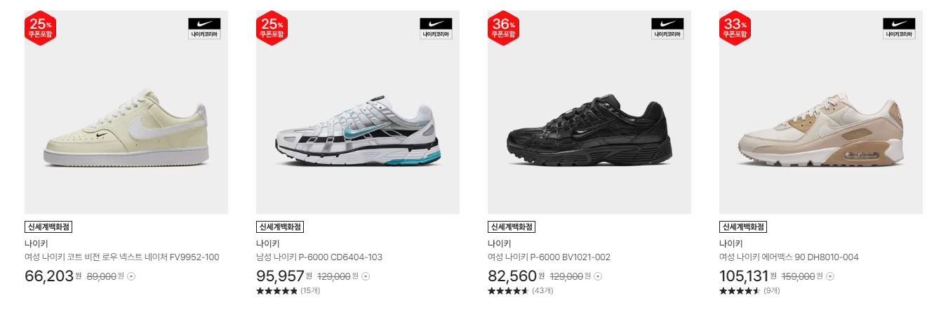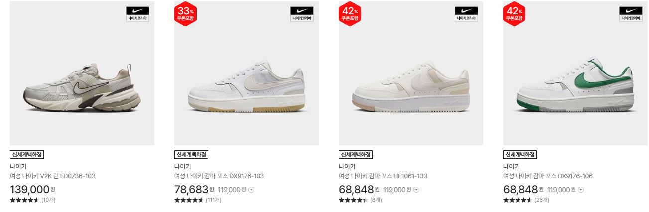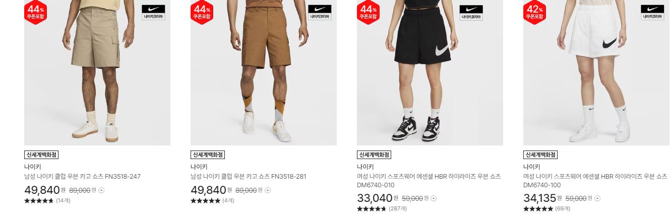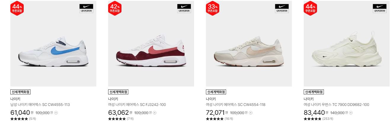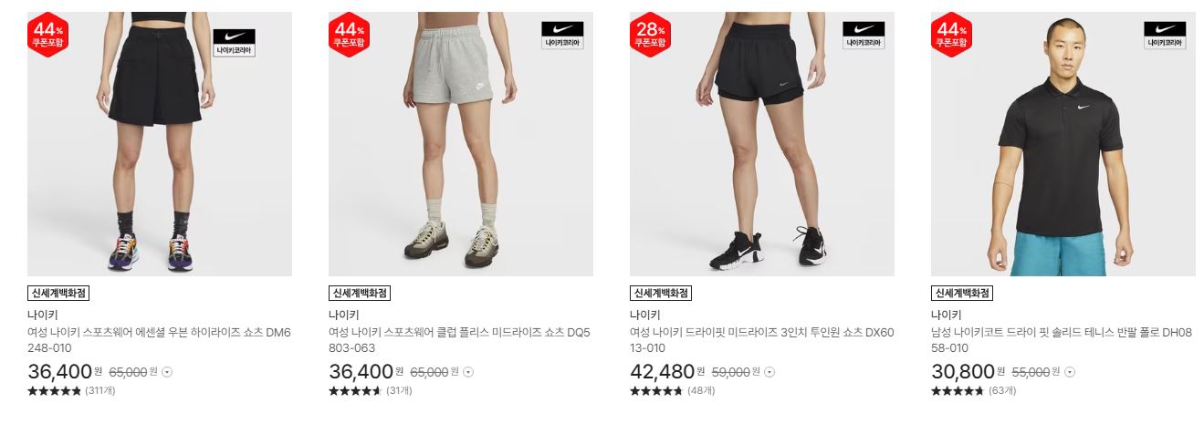 나이키 다양한 제품을 할인 판매하네요.