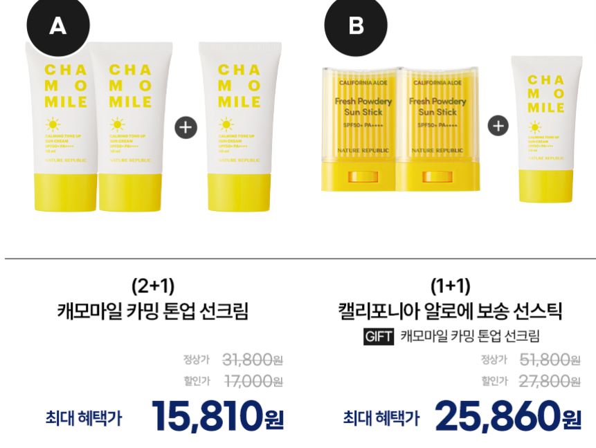 할인 품목 : 선크림, 마스크팩, 토너 등