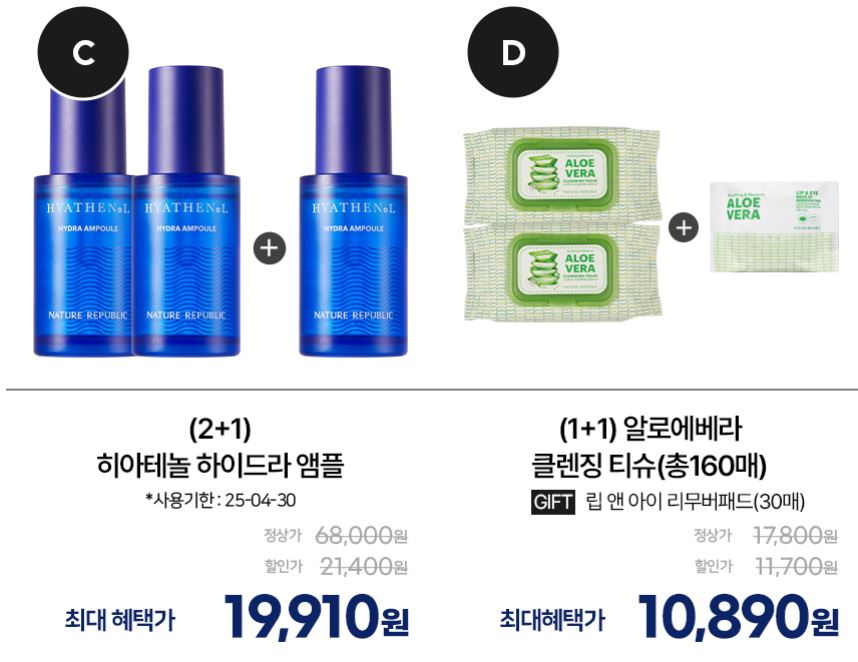 할인 품목 : 선크림, 마스크팩, 토너 등