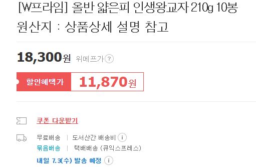 올반 얇은피 인생왕교자 210g 10봉 할인 정보 [링크]