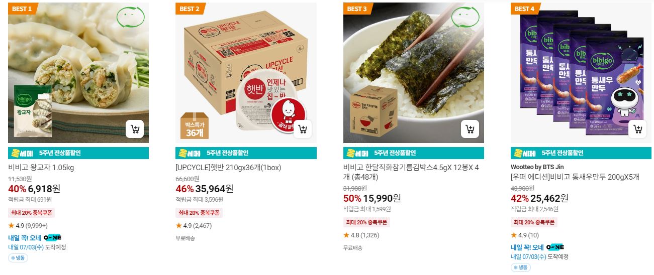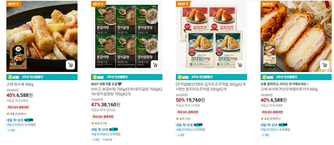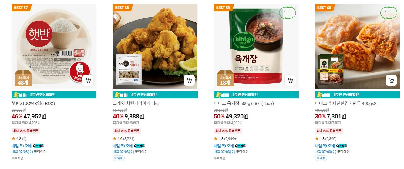 할인 품목 : 만두, 햇반, 탕수육 등