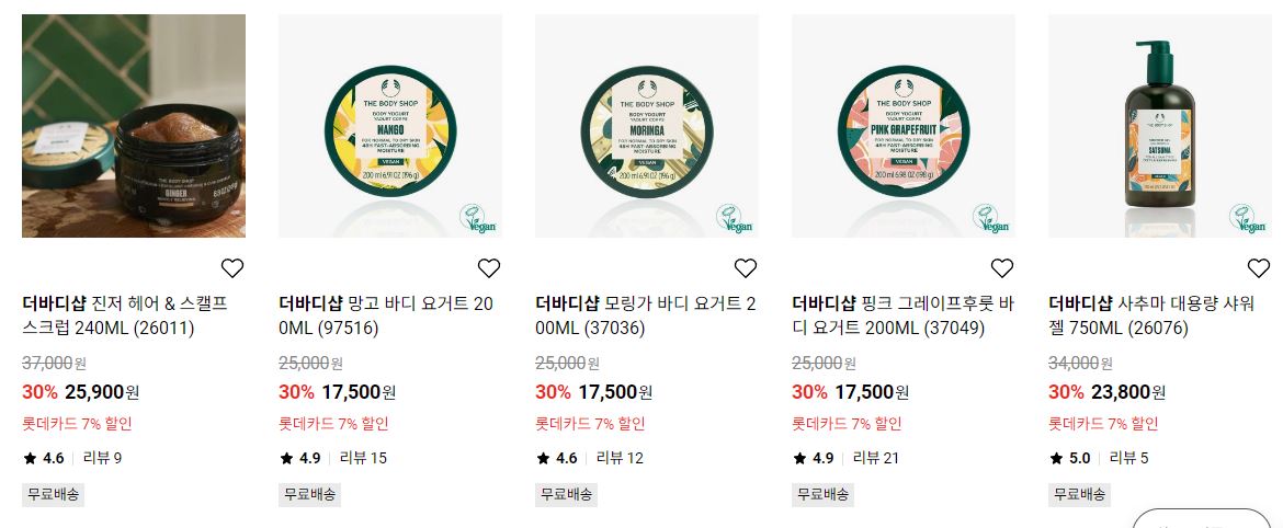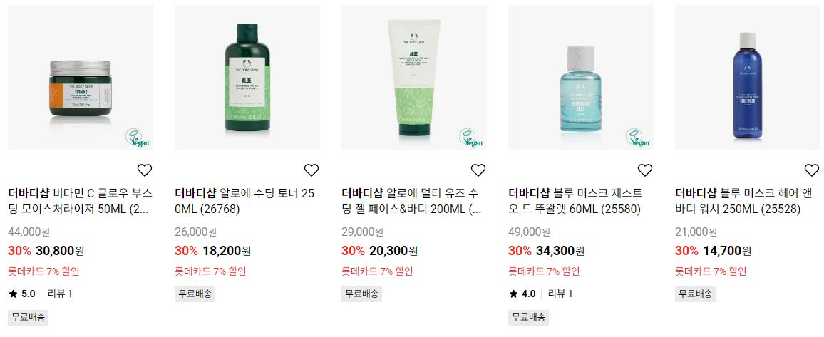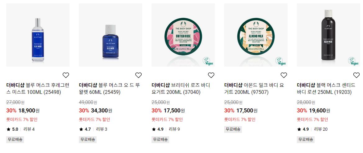 더바디샵 다양한 제품을 할인 판매하네요.
