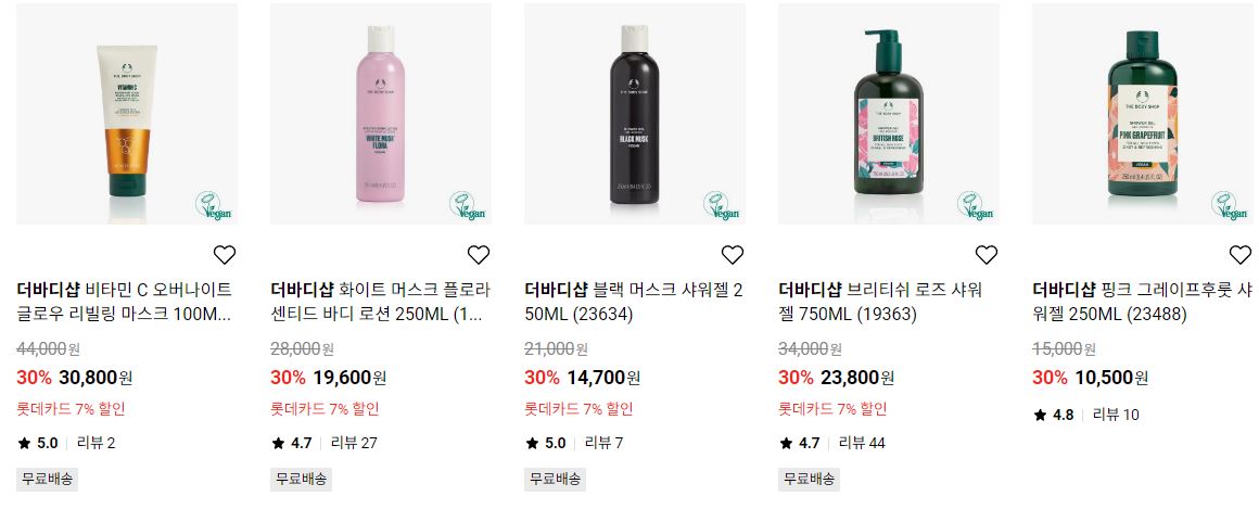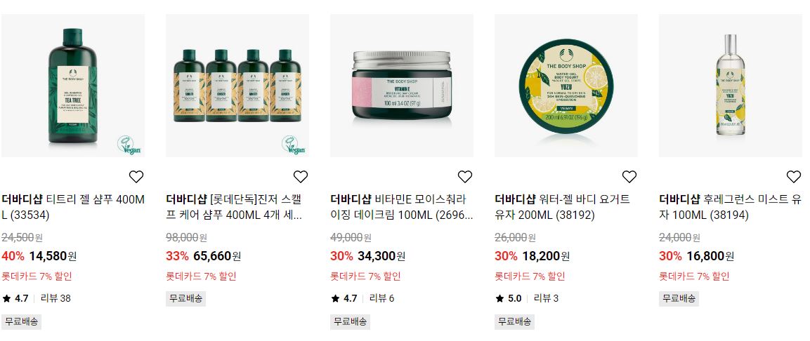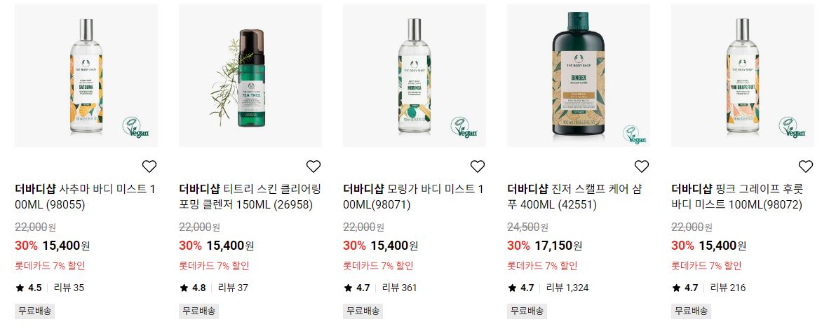 더바디샵 다양한 제품을 할인 판매하네요.