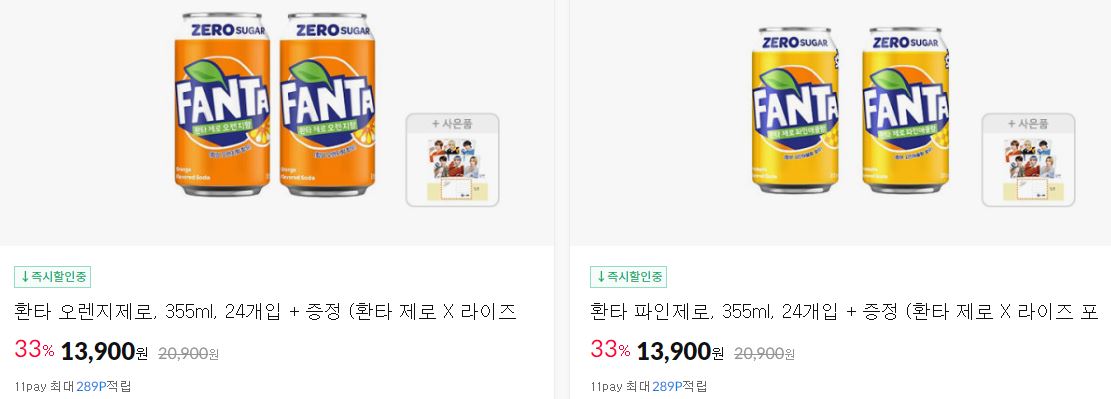 할인 품목 : 환타, 코카콜라, 스프라이트 등