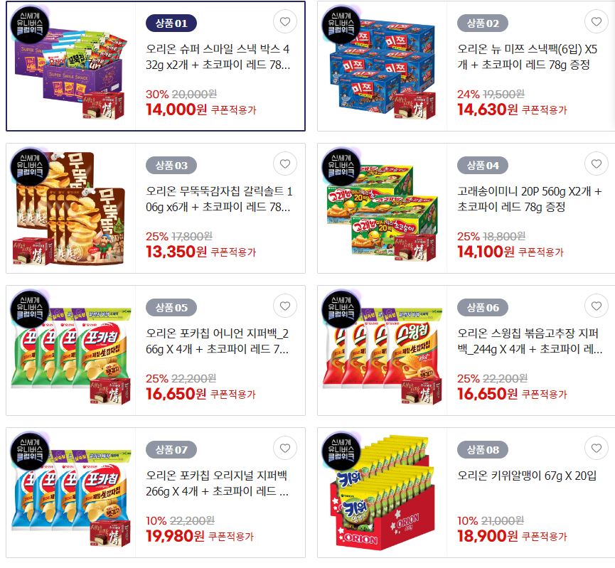 할인 품목 : 포카칩, 고래밥, 다이제 등