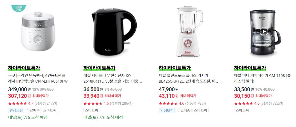 할인 품목 : 노트북, 청소기, 이어폰 등