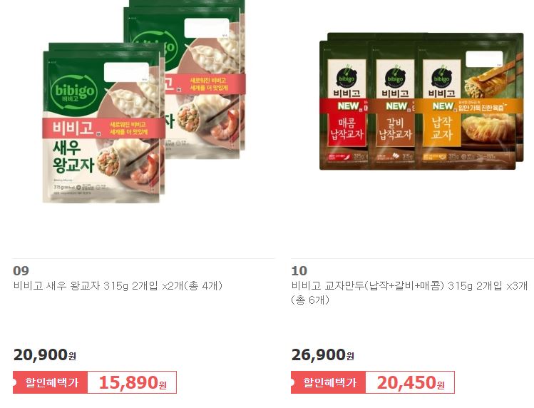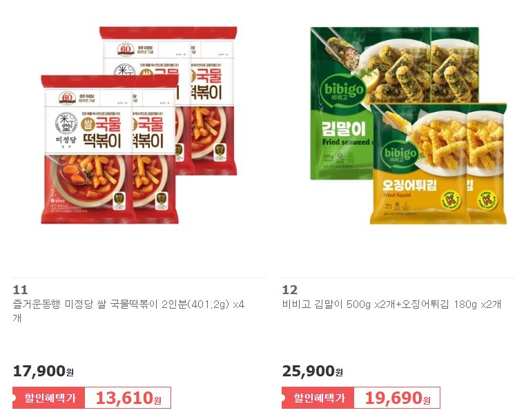 할인 품목 : 만두, 떡갈비, 컵반 등